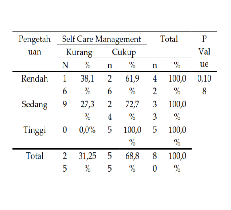 Hubungan Tingkat Pengetahuan dan Kualitas Hidup Terhadap Self Care Management pada Pasien Hipertensi di Puskesmas Cangkol Kota Cirebon Tahun 2022