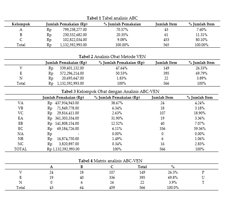 Efektifitas Metode ABC dan VEN Terhadap Perencanaan Obat di RSUD Praya Kabupaten Lombok Tengah Tahun 2022