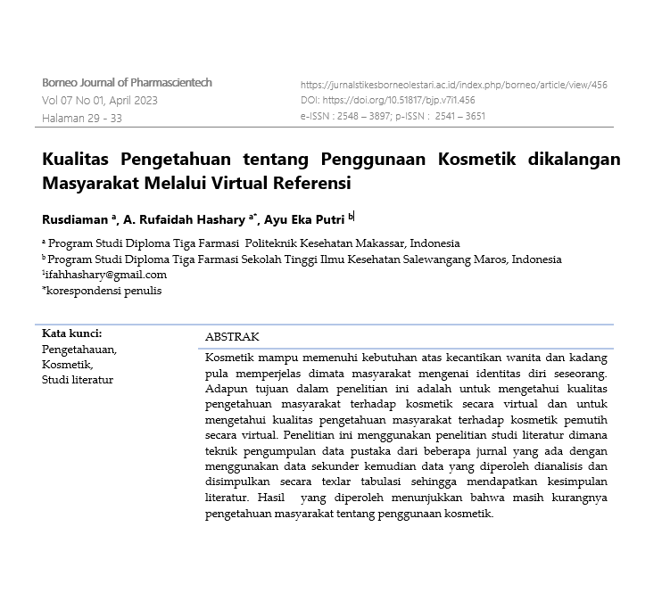 Kualitas Pengetahuan tentang Penggunaan Kosmetik dikalangan Masyarakat Melalui Virtual Referensi